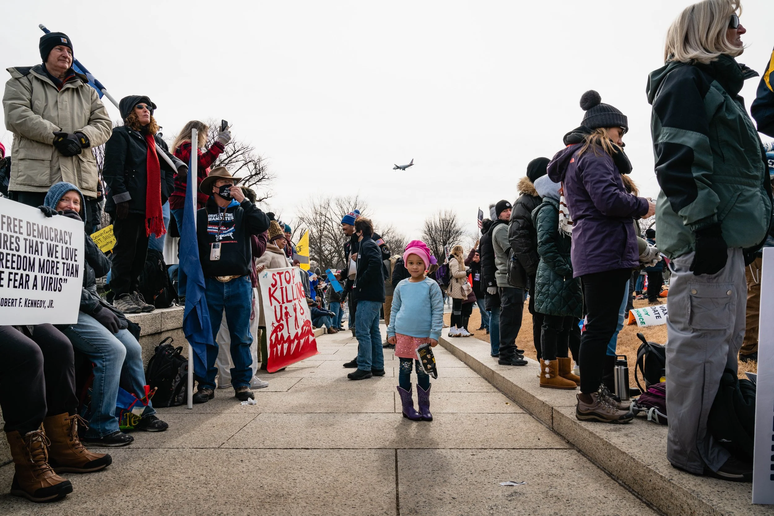 Thousands of people marched from the Washington Monument to the Lincoln Memorial to protest vaccine mandates on January 23, 2021.